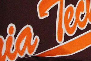 Tackle Twill uses an embroidery machine to sew down a piece of twill fabric, in a way similar to applique. It is an upscale product arguably producing the best looking and most durable embellishment to a uniform or other garment.